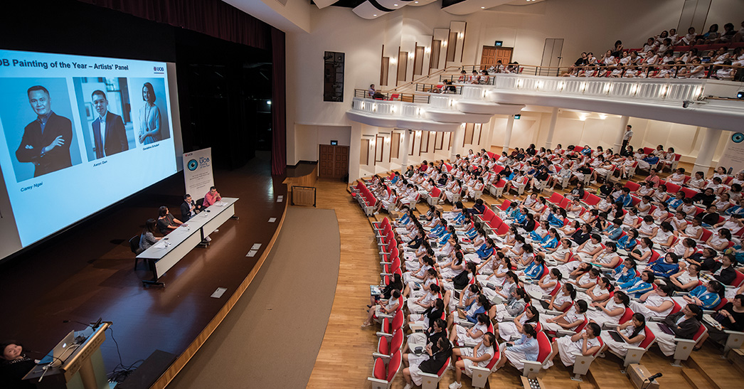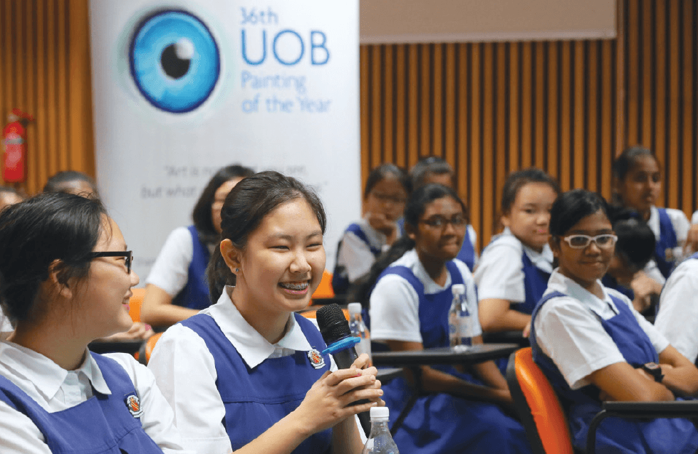 To inspire art students to pursue their passion, we held art dialogue sessions at schools across the region. In 2017, we launched the Artist’s Conversations series in Singapore where our UOB POY alumni artists shared their experiences with more than 600 students from schools with the Art Elective Programme. In Indonesia, we arranged for local artists and the Executive Director of Japan’s Fukuoka Asian Art Museum to share their thoughts on Asian contemporary art with students at the Bandung Institute of Technology and at the Indonesian Institute of the Arts Yogyakarta.