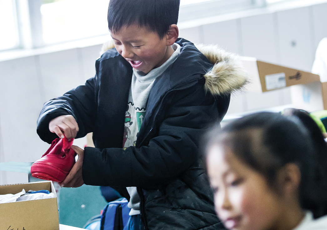 The children at Central Primary School in Pian Ma Yi Minority Village are spurred to put their best foot forward in the new academic year upon receiving gifts of new shoes from the UOB China team.
